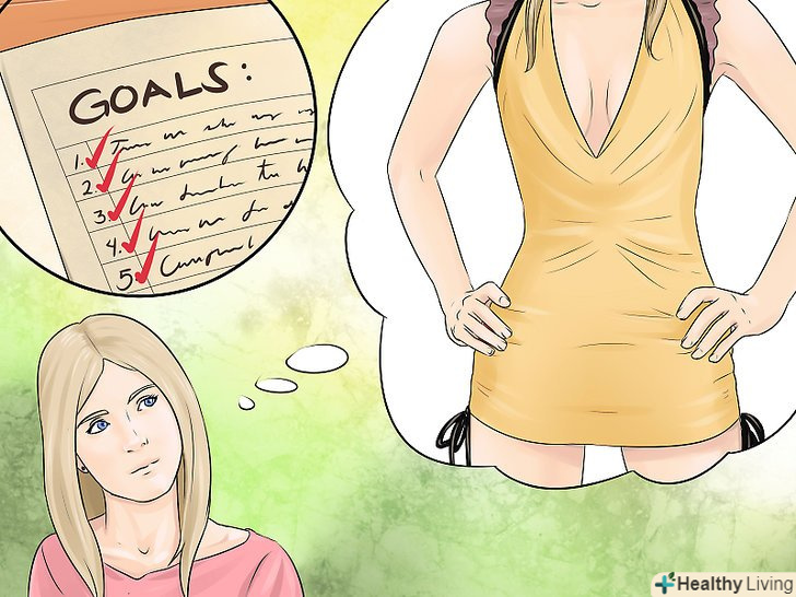 Винагороджуйте себе за досягнення проміжних цілей.невеликі приємні призи допоможуть спонукати вас до подальших дій і підтримати вас на шляху до кінцевої мети. Однак не заохочуйте себе їжею, щоб не відхилятися від здорових звичок, які ви з таким трудом виробляєте. Замість цього винагородите себе чимось, що ви дуже любите або дуже хочете мати. Наприклад, купіть собі нові туфлі або блузку, яку давно пригледіли.[13]- Спробуйте винагороджувати себе активними заняттями, щоб зробити своє життя ще активніше. Наприклад, візьміть урок плавання на байдарці або гри в гольф.