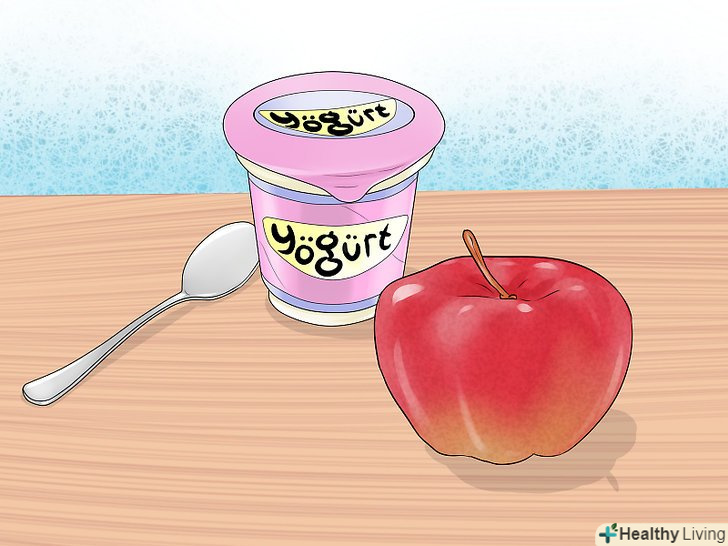 Втамовуйте голод корисними перекусами.зниження ваги і принципи харчування при СПКЯ можуть провокувати відчуття голоду між прийомами їжі. Те, що ви стежите за вагою, не означає повної заборони на перекушування. Вибирайте продукти, багаті нежирними білками і містять клітковину. Таке поєднання допоможе вгамувати голод до наступного запланованого прийому їжі або перекусу.[6]- Будьте обережні з перекусами! Вони хороші, якщо перерва між прийомами їжі становить більше 4-5 годин або якщо вам потрібно підкріпити сили перед або після тренування.