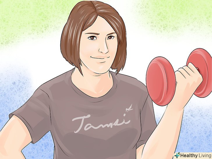 Виконуйте силові вправи, щоб наростити м'язи і скинути вагу.щоб силові вправи приносили хоча б мінімальну користь для здоров'я, потрібно присвячувати їм хоча б по 25 хвилин 2 рази на тиждень.[10] збільшення м'язової маси веде до прискорення обміну речовин, що, в свою чергу, допоможе в наполегливій боротьбі проти зайвої ваги пацієнтам з СПКЯ.- Позитивна зв'язок була виявлена між силовими тренуваннями і поліпшенням інсулінового відгуку, а також ослабленням інших симптомів синдрому полікістозних яєчників.