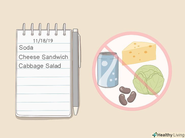 Перевірте, чи не містить ваш раціон таких продуктів і напоїв, які можуть викликати одутлість.деякі види їжі сприяють здуттю живота, яке може привести до одутлості особи. Спробуйте вести щоденник харчування, щоб визначити, які продукти викликають у вас здуття. Якщо ви виявите подібні продукти, спробуйте виключити їх зі свого раціону і перевірити, чи допоможе це.[3] перевірте, чи не вживаєте ви регулярно наступне:[4]- Газовані напої;