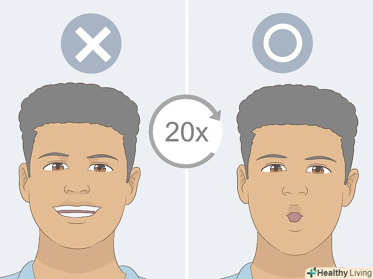 Скажіть " Ікс " і " о " по черзі 20 разів поспіль.чергування цих звуків допоможе розробити м'язи обличчя. Голосно і чітко скажіть "Ікс-о-Ікс-о" 20 разів поспіль.[9]- Спробуйте виконувати цю вправу, коли одягаєтеся вранці.