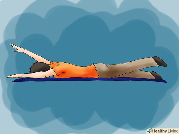 Виконуйте вправу»плавання".ляжте на живіт, випрямивши руки вперед, а ноги назад. Піднімайте ліву ногу і праву руку верх, одночасно, на 3 секунди, потім, опустіть і виконайте те ж саме правою ногою і лівою рукою.- Зробіть 10 таких рухів на кожну сторону. Потім, виберіть швидкість і махайте руками і ногами протягом 30 секунд.