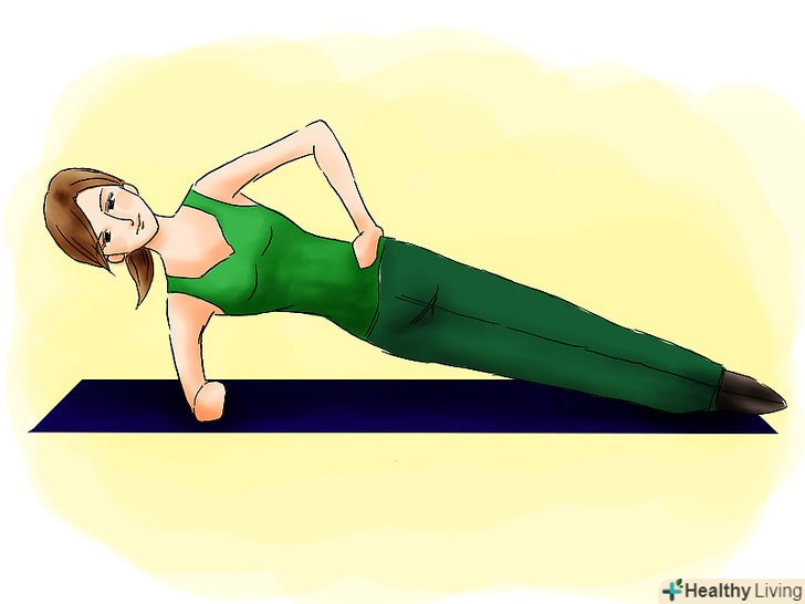 Робіть "планку" з перенесенням ваги по сторонах.перенесіть всю вагу тіла на праву руку, коли стоїте в положенні планки. Переміщайте тіло до тих пір, поки весь ваш вага не виявиться розподілений на праві руку і ступню.- Переконайтеся, що у вас виходить рівна лінія між ступнями і головою. Чи не прогинайтеся в плечах. Тримайте цю позицію 30 секунд - 2 хвилини. Поміняйте сторону і повторіть.