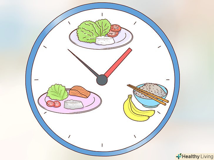 Їжте три рази на день.Вам слід приймати їжу в три повноцінних прийому з легкими корисними перекусами між ними. Так ви не будете відчувати голоду і прагнути вгамувати його чимось шкідливим. Не пропускайте прийоми їжі: це швидше зашкодить вашій дієті, ніж допоможе.