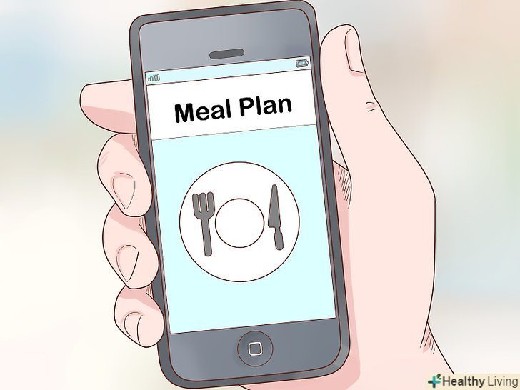 Створіть план, якого зможете дотримуватися.всі ці розмови про те, щоб не їсти шкідливу їжу, хороші, але якщо у вас немає плану, вам буде складно дотримуватися цих правил. Ви знаєте, що вам потрібно робити, але що ви будете робити? Знайдіть план, який підходить вам і вашим цілям.- Подумайте про те, щоб встановити для себе мету по калоріях на кожен день (наша стаття«як порахувати, скільки калорій вам потрібно з'їсти, щоб схуднути» може допомогти вам в цьому). Якщо вам не подобається ця ідея, націльтеся на певну кількість овочів (або придумайте подібне правило). А стежити за цим сьогодні простіше простого за допомогою додатків для смартфона!