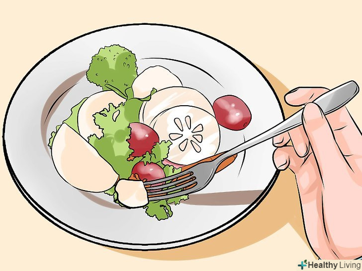 - Їжте овочі з кожним прийомом їжі. Овочі допоможуть вам насититися, не перевищуючи норму калорійності. Багато овочів складаються в основному з води, а це дуже корисно при схудненні.