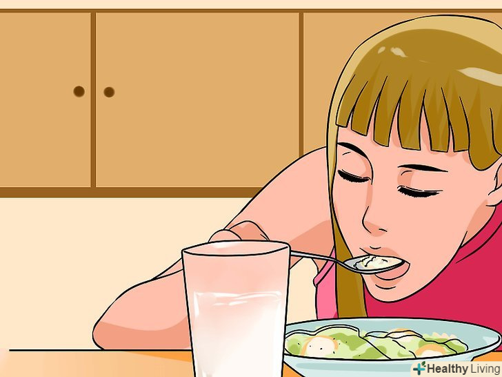 Їжте потрібну кількість їжі.щоб схуднути, не завжди потрібно їсти менше. Іноді потрібно навіть їсти більше. Якщо хочете, щоб ваша фігура сильно змінилася, найпростіше почати з харчування.- Їжте протягом усього дня. Це дозволить підтримувати роботу обміну речовин. Придумайте графік харчування і дотримуйтеся його. Слід їсти не три, а п'ять разів на день, але порції при цьому повинні бути менше.[3]