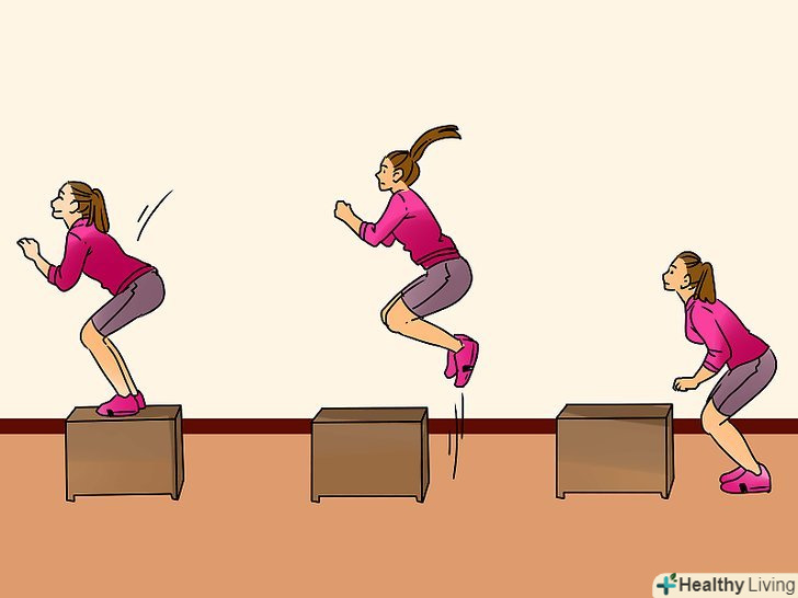 Спробуйте тренування високої інтенсивності.це новий вид тренувань, які зазвичай займають мало часу і дозволяють пропрацювати всі м'язи тіла. За 30 хвилин при правильному виконанні вправ ви можете витратити 500 калорій. Такі тренування зазвичай бувають круговими і розраховані на максимальну витрату енергії. Наприклад, протягом хвилини потрібно виконувати наступні вправи і зробити при цьому 6 кіл без зупинки:- Стрибки на платформу