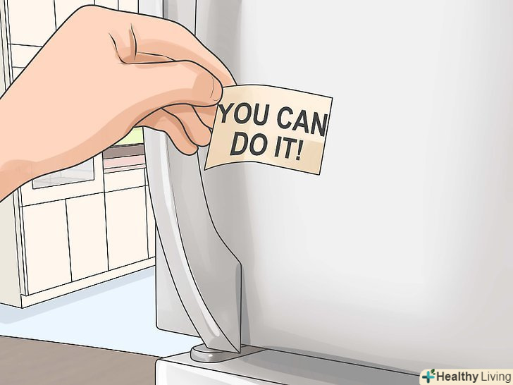 Записуйте мотивуючі цитати.може бути непросто дотримуватися суворої дієти протягом усього місяця. Зберігайте цілі та мотивацію на першому плані, щоб залишатися зосередженим на успіху.- Невеликі мотиваційні висловлювання можна записати в щоденник або на стікери і наклеїти їх на холодильник, над робочим столом або поруч з ліжком.