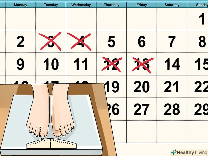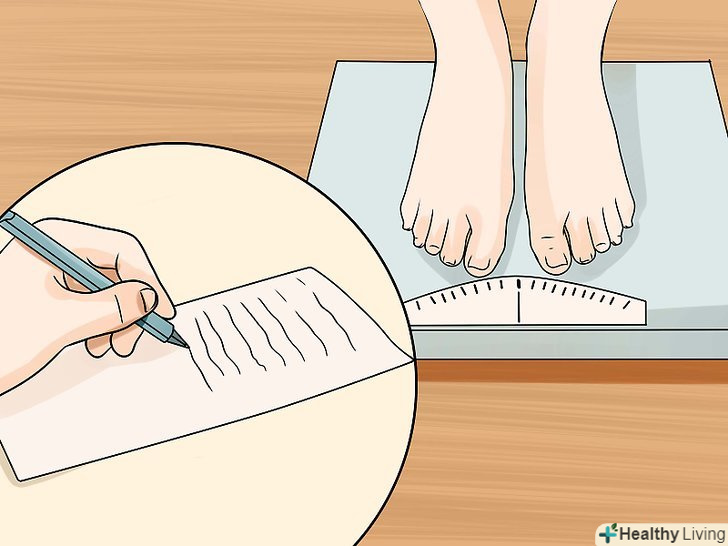 - Не забувайте стежити за своєю вагою. Найкраще зважуватися 1-2 рази на тиждень. Таким чином ви зможете безперервно спостерігати за прогресом в справі схуднення.[23]
