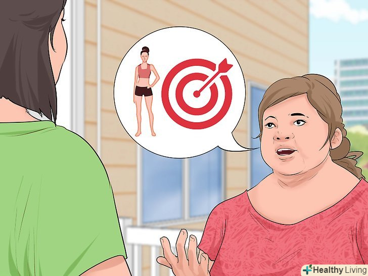 Поставте перед собою конкретну мету.знання того, скільки кілограмів і за який термін слід скинути допоможе вам виробити конкретний план схуднення.- Реальний і добре продуманий план схуднення додасть вам додаткові сили і мотивацію. Це особливо важливо в тому випадку, якщо ви розраховуєте на довгострокову перспективу.[4]