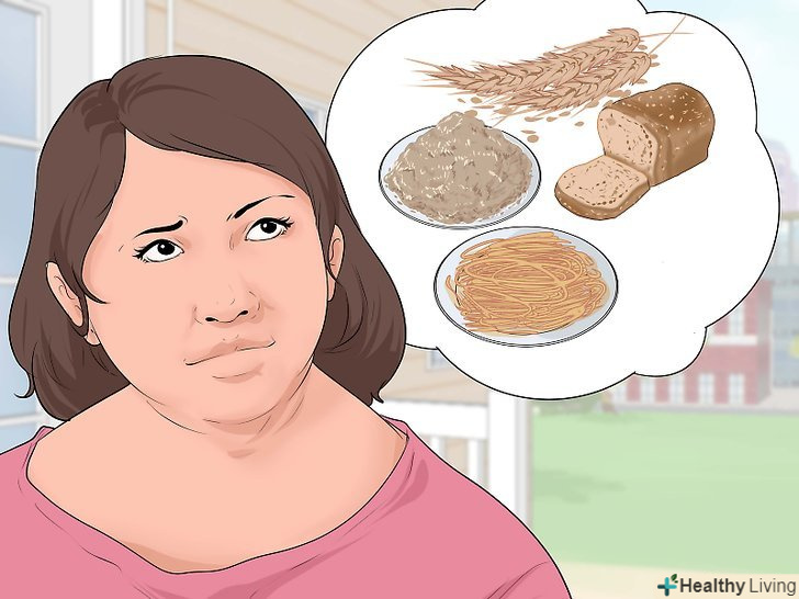 - Якщо ви не відмовляєтеся повністю від хліба, рису або макаронів, вибирайте продукти, які на 100% складаються з цільних зерен. У порівнянні з очищеними зерновими продуктами, наприклад білим хлібом або білим рисом, продукти з цільних зерен багаті харчовими волокнами, вітамінами і мікроелементами.[14]