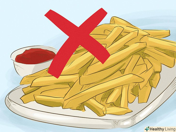 Відмовтеся від картоплі фрі.у більшості меню мережевих закладів швидкого харчування в якості гарніру пропонується картопля фрі. Хоча смажена картопля дуже смачний, кількість калорій в ньому коливається від 300 до 900![5] При цьому він не має майже ніякої поживної цінності-суцільний жир і калорії. Дізнайтеся, чи є можливість замінити картоплю фрі на салат, фрукти або ж взагалі відмовитися від гарніру.