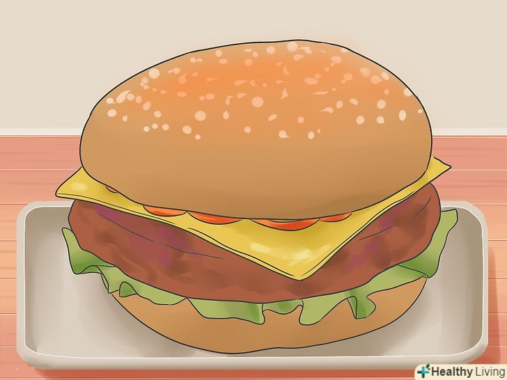 Відмовтеся від булочок для гамбургерів.коли наступного разу ви захочете з'їсти гамбургер або сендвіч, внесіть правки в замовлення і позбудьтеся від зайвих калорій, відмовившись від хліба. Спробуйте замовити сендвіч, загорнутий у листя салату. Так ви скоротите кількість калорій приблизно на 150.[10] у випадку з сендвічем в Subway це число складе близько 280 калорій.- Якщо ж ви не хочете повністю відмовлятися від хліба, то попросіть видалити з нього весь м'якуш, щоб знизити калорійність.[11]