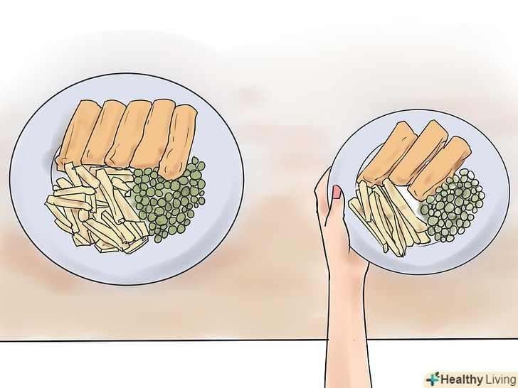 Використовуйте тарілки поменше.коли у вас повна тарілка, ви за звичкою з'їдаєте все, навіть якщо немає особливого бажання. Якщо ви використовуєте тарілки поменше, Ви знаєте, що у вас не буде переїдання. Якщо ви переїли раніше, то пізніше може здатися, що ви голодні ще більше. Протягом декількох днів ваше тіло звикне.