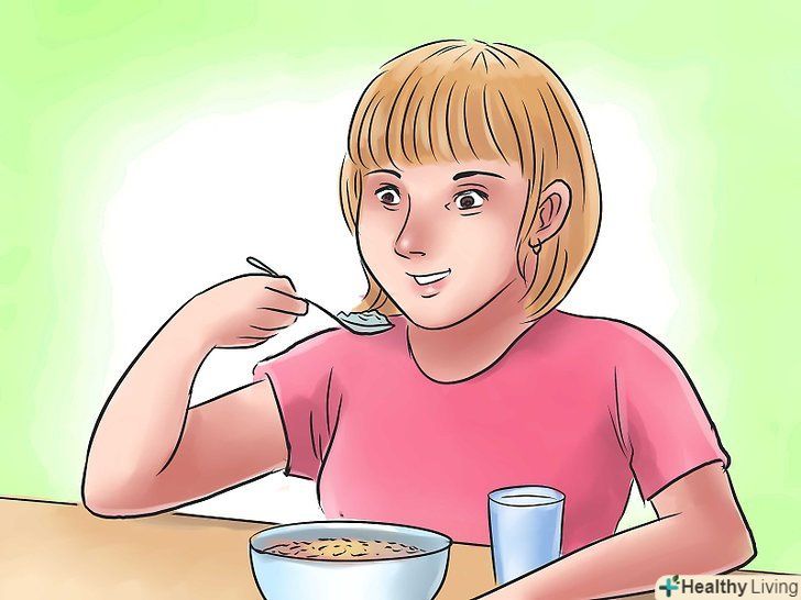 Їжте 300-400 калорій на сніданок протягом 90 хвилин після сну.ранковий прийом їжі запускає процес метаболізму, і сприяє зменшенню зайвої ваги.- Приготуйте сніданок з високим вмістом білка, наприклад, основу такого прийому їжі можуть становити грецький йогурт, вівсянка, Лобода, яєчний омлет або великий коктейль.