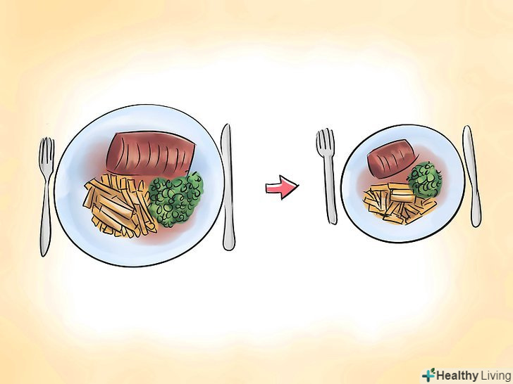 Практикуйте стратегію "mindful eating".ця стратегія пропонує, їсти повільно і в процесі прислухатися до себе і своїх відчуттів: зосередитися на тому, що ви їсте і в якій обстановці, а також на почутті голоду і ситості.- Їжте вдома. Дослідження показують, що ми споживаємо більше калорій в компанії і коли ми п'ємо алкоголь.