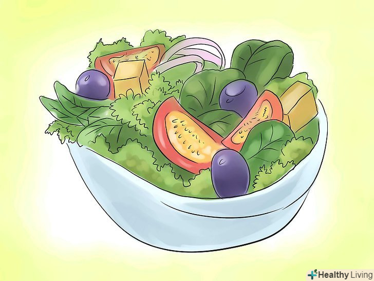 Йдемо в магазин за продуктами.пройдіть по магазину і поставте собі за мету купити в основному фрукти і овочі. Більше половини вмісту вашої тарілки має складатися з овочів і фруктів, причому це відноситься до будь-якого прийому їжі.- Замініть оброблені продукти, такі як хліб, фруктами і овочами, які є прекрасним джерелом складних вуглеводів.