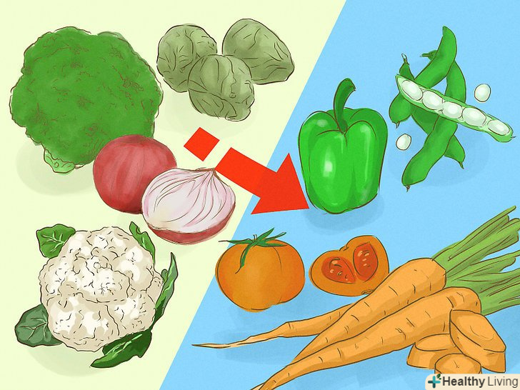 Виключіть з раціону сприяють газоутворення овочі.Відмова від таких овочів не тільки допоможе вам скинути вагу, але і запобіжить здуття живота.[4]- Газоутворення сприяють такі овочі: квасоля, брокколі, кольорова, брюссельська і качанна капуста, цибуля.[5]