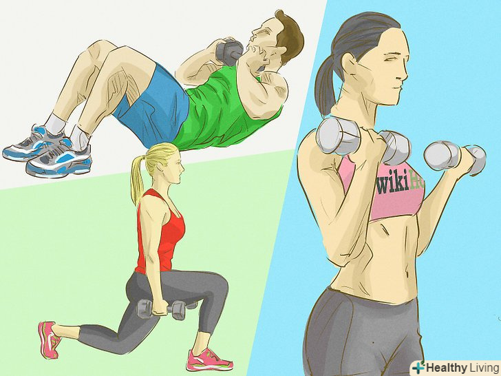 Збільште рівень фізичної активності.навіть якщо ви обмежили кількість калорій і вживання деяких видів їжі, необхідно регулярно займатися фізичними вправами.- Фізичні вправи допомагають скинути вагу і позбутися від зайвої рідини за рахунок потовиділення. Вони дозволяють поліпшити фізичну форму і зменшити здуття живота.