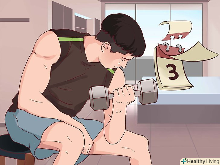 Влаштовуйте 1-3 рази на тиждень силові тренування з підйомом ваг.на додаток до кардиоупражнениям протягом тижня дуже важливо вдаватися і до силових тренувань.- Незважаючи на те, що самі по собі силові тренування не спалюють великої кількості калорій, вони дозволяють наростити м'язову масу, що в свою чергу сприяє підвищенню здатності вашого тіла спалювати калорії.[7]