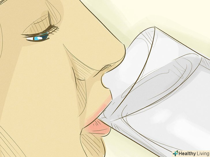 Пийте воду.Слідкуйте за тим, щоб ваш організм не відчував нестачі рідини.- Пийте багато води. Це може здатися дивним, але для позбавлення від зайвої рідини дійсно слід пити більше води. Випивайте протягом дня близько 4 літрів води, щоб уникнути зневоднення і підтримати баланс рідини в організмі.[14]