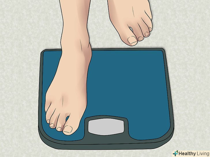 Зважуйтеся.щоб позбутися від жиру на животі або зменшити його кількість, необхідно скинути вагу. Регулярно зважуйтеся-таким чином ви зможете стежити за прогресом.- Найкраще зважуватися 1-2 рази на тиждень. Намагайтеся зважуватися в один і той же день тижня, в однаковий час і в тій же одязі.[17]