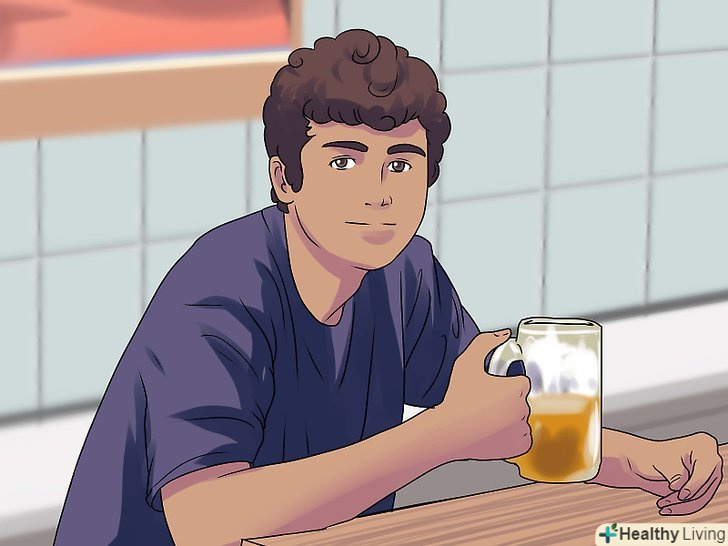 Відмовтеся від спиртного.адже не дарма існує вираз"пивний живіт". Однак пиво далеко не єдиний напій, який сприяє відкладенню жиру на животі. Дослідження показали, що всі види спиртних напоїв ведуть до появи жиру на животі у чоловіків.[9]- Чоловікам рекомендується випивати не більше двох порцій спиртного на день (одна порція становить близько 30 мл міцного напою, 120 мілілітрів вина або 250 мл пива);[10] однак якщо ви хочете позбутися від зайвого жиру на животі, краще зовсім відмовитися від алкоголю.
