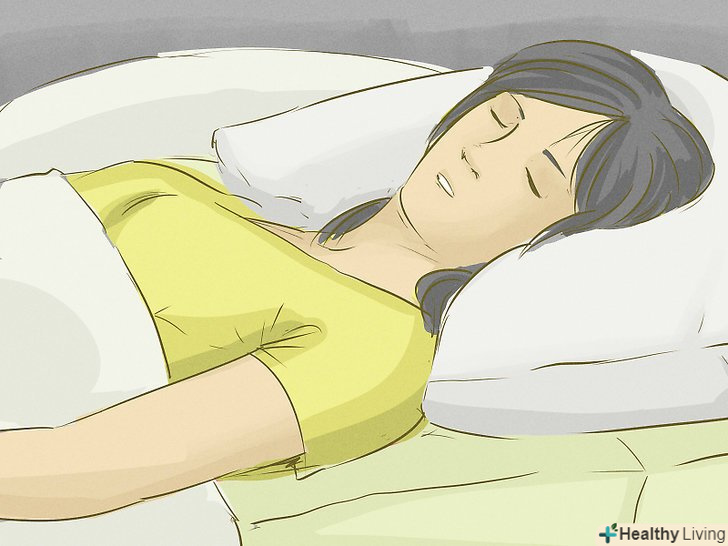 Намагайтеся спати лежачи прямо і глибоко дихаючи.Сон на боці ускладнює кровообіг, що грає важливу роль в спалюванні жирів. Вкладаючись спати, ляжте на спину і зробіть кілька глибоких тривалих вдихів. Дихайте повільно і спокійно. Це послужить сигналом для вашого організму про те, що пора відходити до сну і зайнятися спалюванням жирів.