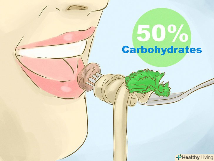 Не позбавляйте себе вуглеводів повністю.слід обмежити споживання вуглеводів, проте не варто зовсім відмовлятися від них. Намагайтеся, щоб продукти з високим вмістом вуглеводів становили близько 50% вашого раціону. Ваш організм потребує глюкози (вуглеводів) – він переробляє її в енергію. Якщо ви не хочете бути млявою, швидко втомлюватися, і врешті-решт знову набрати вагу, не позбавляйте себе вуглеводів.- Відмова від вуглеводів, особливо в даному віці, може уповільнити роботу мозку і вироблення гормонів.