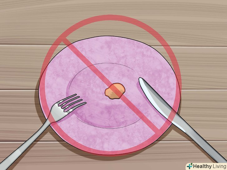 Уникайте екстремальних дієт.деякі вважають, що вони швидше схуднуть, якщо щодня будуть вживати дуже мало калорій. Не виключено, що спочатку вам вдасться скинути певну вагу, проте такий підхід неправильний. По-перше, у вас сповільниться обмін речовин, і спожиті калорії довше залишатимуться в організмі. По-друге, у вас, швидше за все, зменшиться м'язова маса, в результаті чого ваш організм буде спалювати менше калорій. Якщо ви хочете скинути вагу, краще не вдаватися до екстремальних дієт.[23]
