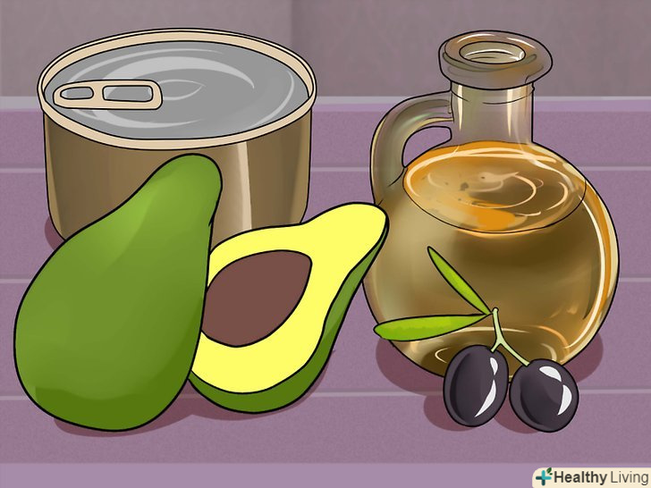 Вживайте корисні жири.серцеві захворювання є найбільш частою причиною чоловічої смертності в усьому світі, і багата жирами і холестерином їжа — одна з основних причин цих захворювань. У той же час корисні (моно - і поліненасичені) жири знижують рівень холестерину і зменшують ризик хвороб серця.[13]- Багато корисних жирів міститься в жирних сортах риби (лососі, сардинах), оливковій олії, авокадо, горіхах.