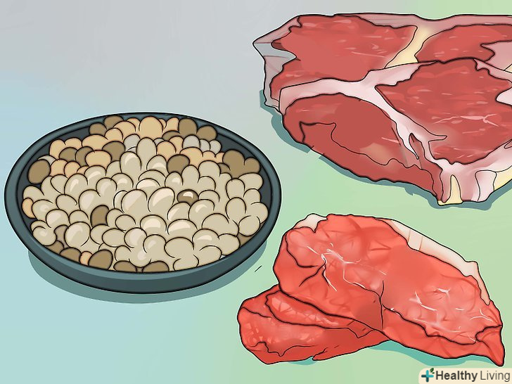 Включіть в свій раціон залізо.дефіцит заліза уповільнює обмін речовин, тому ваш раціон повинен містити достатню кількість цього мікроелемента. Хорошим джерелом заліза є такі продукти, як молюски, червоне м'ясо, сочевиця, квасоля, шпинат.[14]