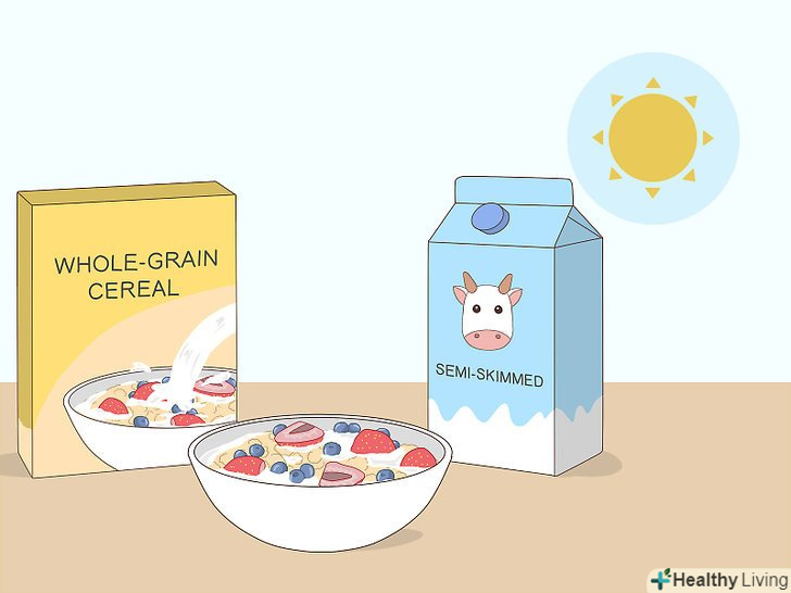 - В якості корисного і смачного сніданку добре підійде миска каші з цільних зерен з напівобезжиреним молоком і свіжими фруктами.[9]