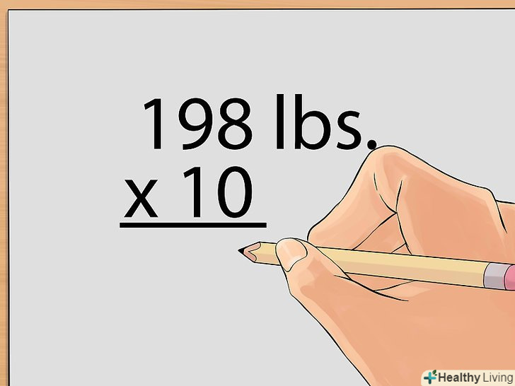 Визначте свою базову швидкість обміну речовин, щоб з'ясувати, скільки калорій ви спалюєте без фізичних навантажень.для цього помножте свою вагу на 22. В результаті ви приблизно визначите, скільки калорій спалюєте в стані спокою (наприклад, при вазі 90 кілограмів людина спалює приблизно 2000 калорій). В Інтернеті є безліч сайтів, на яких можна більш точно розрахувати базову швидкість обміну речовин. Знання базової швидкості обміну речовин дозволить вам визначити, скільки додаткових калорій потрібно спалювати за рахунок фізичних вправ. Наприклад:- Припустимо, ви скоротили свій раціон всього лише до 1200 калорій в день протягом тижня.