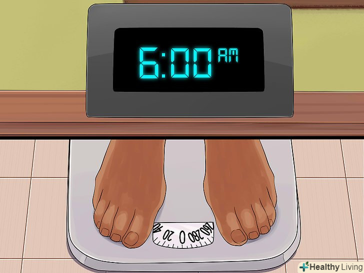 Зважуйтеся щоранку після того, як встанете з ліжка.цей час найкраще підходить, щоб найбільш точно визначити вагу, поки їжа і вода не збільшать його. Встаньте на ваги в нижній білизні і запишіть поточний вага. Доведено, що постійне спостереження за своєю вагою (заведіть для цього невеликий щоденник) допомагає досягти поставлених цілей і схуднути.[15]