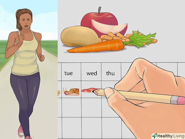 Подумайте про те, щоб повільно скинути вагу.різка зміна дієти в спробі швидко схуднути часто призводить до відновлення старої ваги. Це відбувається, якщо після виснажливих 7 днів дієти ви не в змозі зберегти екстремальний режим харчування і знову повертаєтеся до колишніх шкідливих звичок. Після завершення дієти постарайтеся поступово перейти до більш здорового способу життя, а не намагатися кардинально змінити все протягом одного дня.- Займайтеся фізичними вправами по 30 хвилин 4-5 разів на тиждень.
