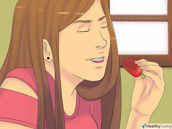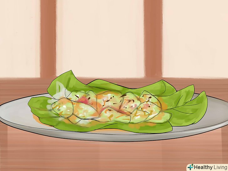 Приділяйте особливу увагу овочам.дуже складно переїсти, якщо ви харчуєтеся овочами. Як не дивно, розхожа думка про те, що овочі не смачні, має під собою наукове обґрунтування, яке пов'язане з поняттям «точки блаженства», тобто кількості калорій, яке необхідно з'їсти, щоб відчути себе ситим. Перероблені продукти спеціально виготовляють так, що вони мають підвищену точкою блаженства, в той час як натуральні і корисні овочі допомагають вжити менше калорій і при цьому вгамувати голод.- Готуйте салати зі своїх улюблених фруктів і овочів: салату-латуку, моркви, помідорів, огірків, кучерявої капусти, селери, яблук, полуниці, червоної цибулі і так далі. Якомога менше заправляйте салат: досить буде 1-2 чайних ложок (5-10 мілілітрів) рослинного масла і оцту.