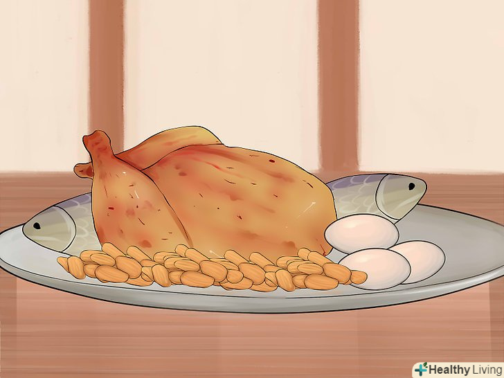 Їжте нежирну білкову їжу, щоб вгамувати голод і надовго зарядитися енергією.після відмови від вуглеводів ви можете постійно відчувати голод. Цього можна уникнути, якщо включити в кожен прийом їжі нежирні джерела білка. До таких продуктів відносяться:- Смажена на грилі або запечена курятина;
