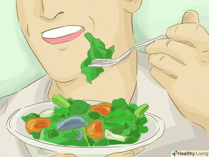 Їжте продукти, що містять пробіотики.пробіотиками називають живі дріжджі і бактерії, які природним чином присутні в нашому організмі. Їжа, яка містить пробіотики, допомагає кишечнику бути здоровим і допомагає перевареної їжі краще просуватися через шлунок і по кишечнику.[9]- Дуже корисно з'їдати невелику порцію грецького йогурту. Переконайтеся при цьому, що він не містить солі і містить активні культури.