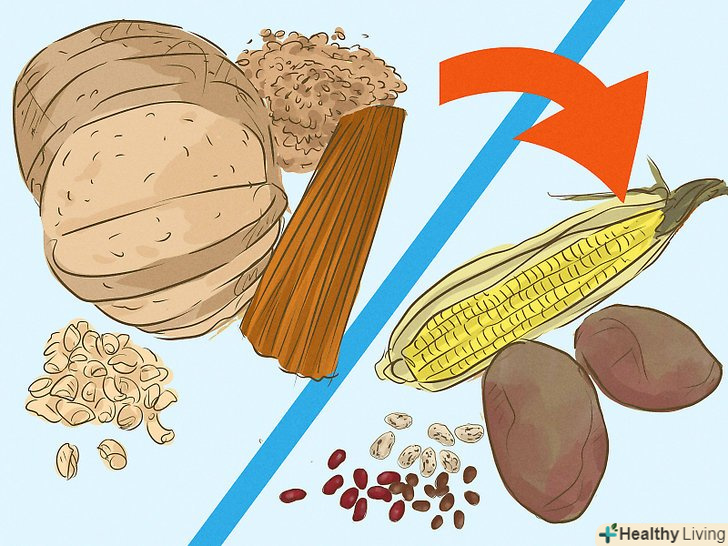 Зменшіть споживання крохмалю. [3] як і сіль, крохмаль утримує в організмі воду. Якщо ви зменшите споживання крохмалю, то в тілі затримається менше води, яку ви випили. Крохмаль міститься в таких продуктах, як:- Макаронні вироби та картопля фрі