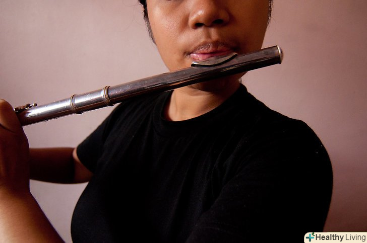 Ідентифікуйте частини флейти.найдовша частина, з клапанами, - це тіло. Місце, в яке ви дуєте, називається головка. Коротка частина на кінці флейти називається коліно. Це легко запам'ятати, якщо ви представите флейту у вигляді чудової звірятка сріблястого кольору.