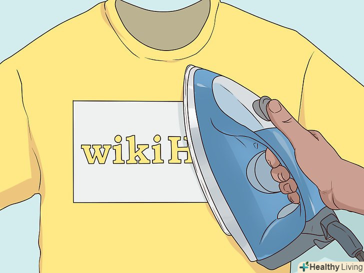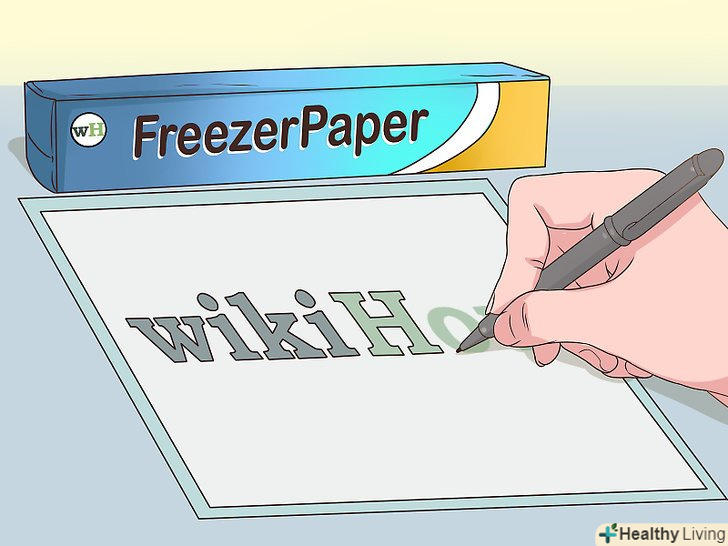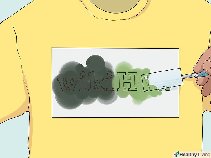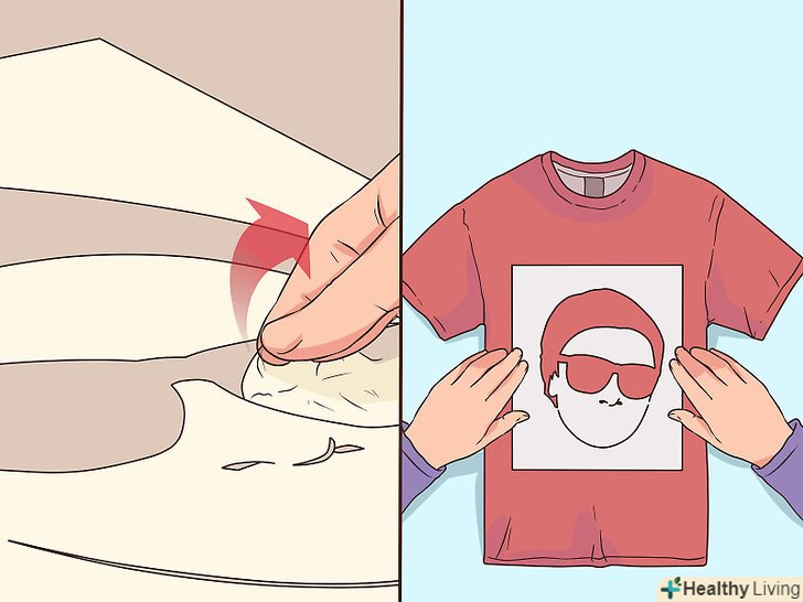 Приутюжьте трафарет з вощеного паперу глянцевою стороною до футболки. покладіть трафарет на футболку глянцевою стороною до тканини в тому місці, де повинен розташовуватися малюнок. Пропрасуйте футболку разом з трафаретом, використовуючи гарячу праску без пари. Жар праски змусить папір прилипнути до футболки. [8]- Приділіть особливу увагу пропрасовування контурів трафарету.