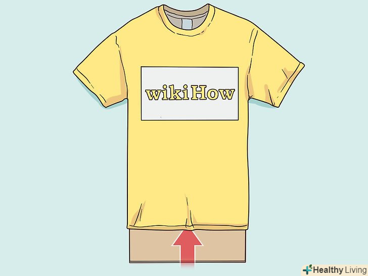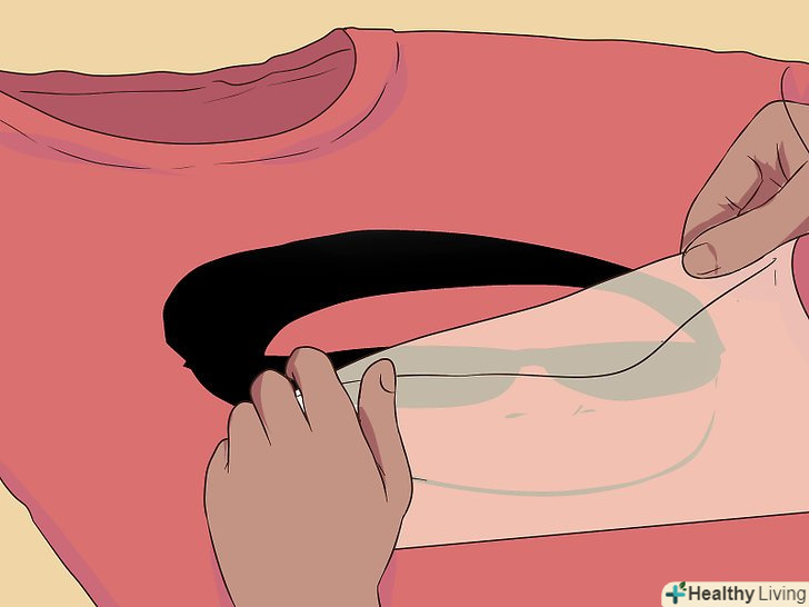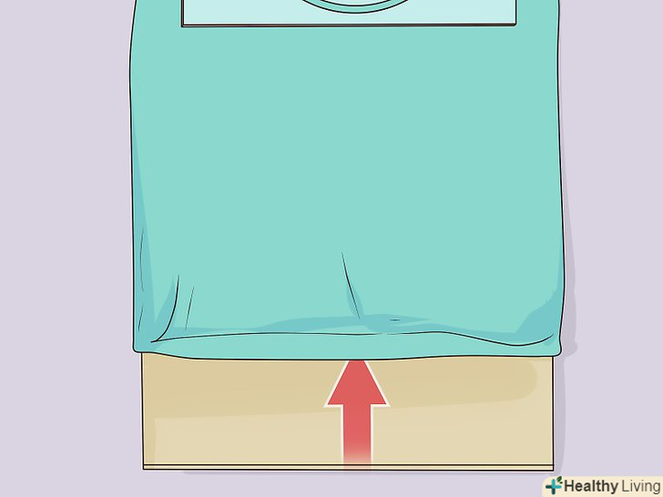 Вкладіть всередину футболки лист картону. картонний лист повинен бути трохи більше трафарету. Він не дозволить фарбі просочитися на іншу сторону футболки (спинку). [9]