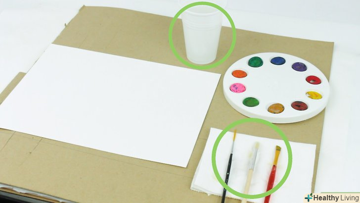 Розставте фарбу, кисті, воду. ви навряд чи захочете переривати роботу і шукати потрібні вам речі в процесі малювання. Тримайте все необхідне поруч, але не захаращуйте робочу поверхню.- Якщо ви правша, розташуйте палітру, кисті і ємності з водою з правого боку столу, а паперові рушники та інші приналежності - зліва. Поміняйте їх місцями, якщо ви лівша.