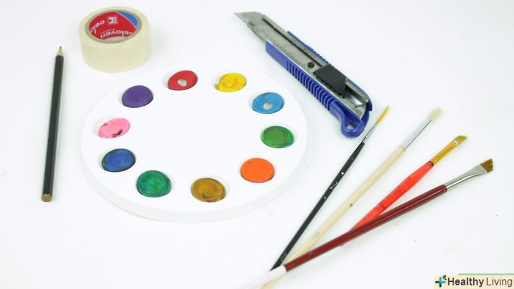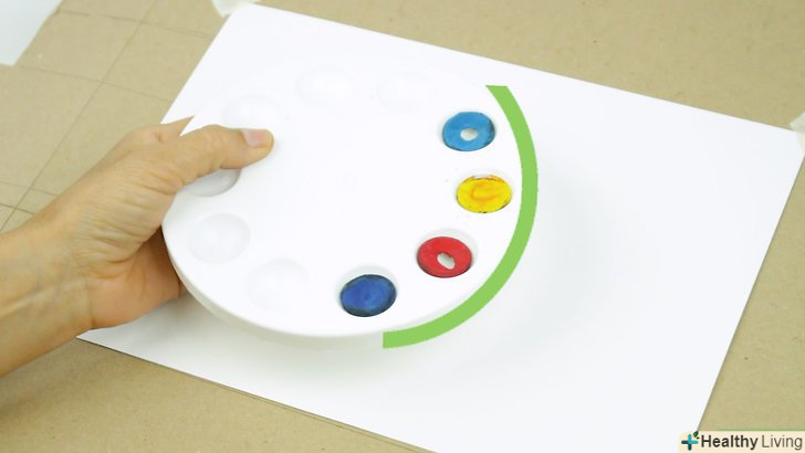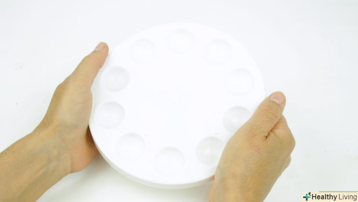 Візьміть палітру для змішування фарб. можна використовувати для цих цілей звичайну велику тарілку. Ви зможете капати туди фарбою і змішувати кольори. Якщо ж ви хочете купити готову палітру, вибирайте таку, щоб в ній були глибокі ємності для змішування фарби з водою. Можна купити палітру з безліччю ємностей або кілька ємностей для окремих кольорів. [4]