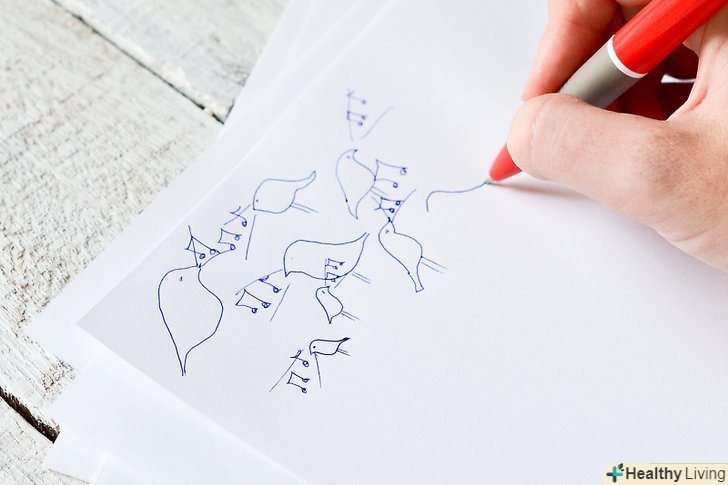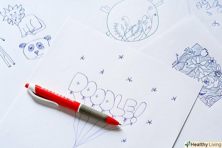 Асоціації. не зациклюйтеся на малюванні одних тільки квіточок або власного імені. Ви можете почати малювати квіточки, потім подумати про свою подругу, у якої є пес, і намалювати цього пса. Розвивайте свої думки! Просто почніть з однієї картинки і продовжуйте малювати все, що приходить вам в голову.- Не "залипайте" на одній темі або ідеї. Ніхто вас не засудить, і навіть, можливо, не побачить ваших начерків, тому не зациклюйтеся і малюйте все, що хочете.