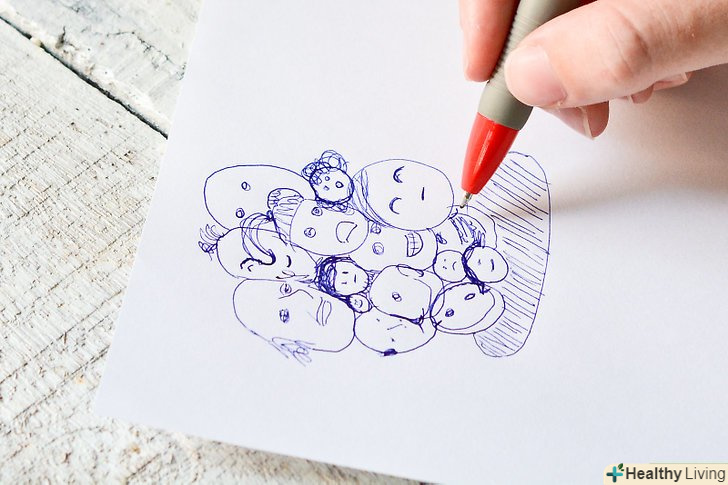 Малюйте обличчя. особи малювати складніше, ніж квіти, але вам сподобається результат! Ви можете малювати обличчя ваших вчителів, друзів, або просто особи людей з автобуса, в якому ви їхали сьогодні вранці. Ось деякі способи малювання обличчя:- Практикуйтеся малювати одне і те ж обличчя з різними виразами. Це може вам краще пізнати обличчя, яке ви малюєте.