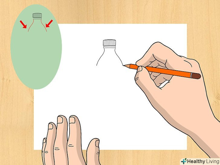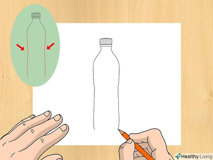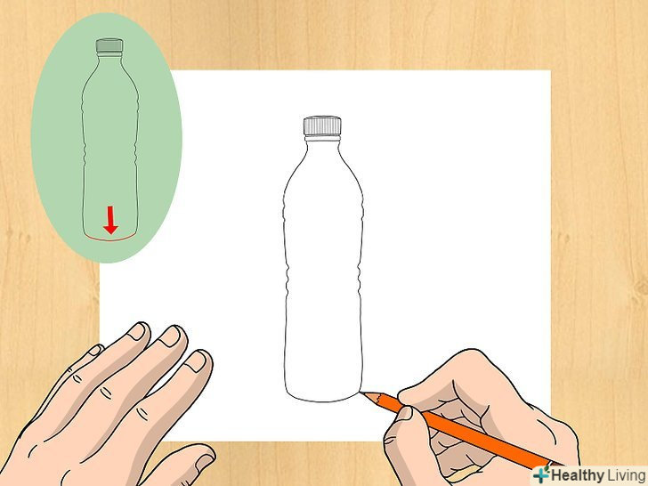 Намалюйте бічні стінки пляшки. вони можуть мати різні обриси, на малюнку вище у них проста циліндрична форма.