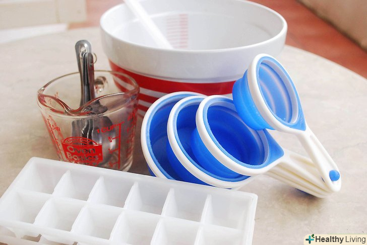 - Налийте суміш в ємність, форми для кексів або лоток для льоду. заповніть кожне відділення тільки наполовину, так як необхідно, щоб суміш висохла перед додаванням води і виготовленням акварелі.